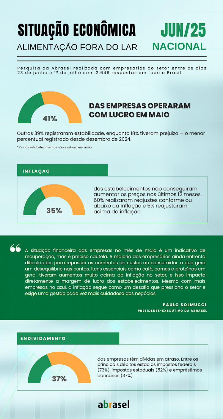 "Itens essenciais como café, carnes e proteínas em geral tiveram aumentos muito acima da inflação no setor, e isso impacta diretamente a margem de lucro dos estabelecimentos. Mesmo com mais empresas no azul, a inflação segue como um desafio que pressiona o setor e exige uma gestão cada vez mais cuidadosa dos negócios”, finaliza.